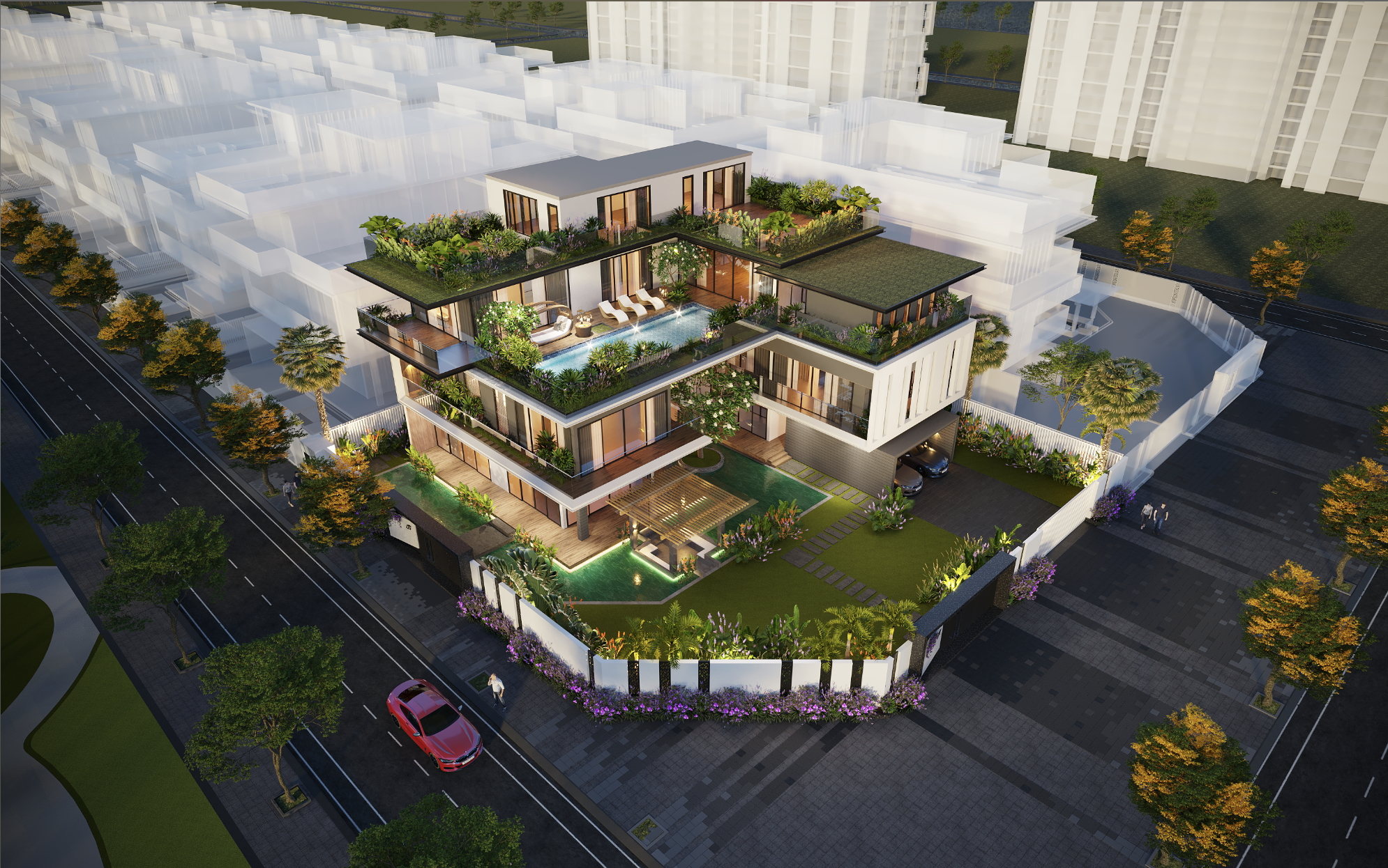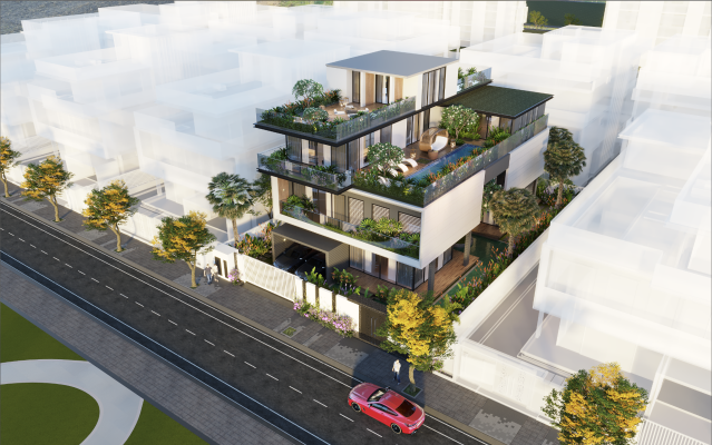 Số lượng căn nhà : 58 căn Villa đơn lập. - Diện tích đất : 600 – 1000m² Căn nhà xây dựng 1 trệt 3 lầu với diện tích xây dựng 300-380m²