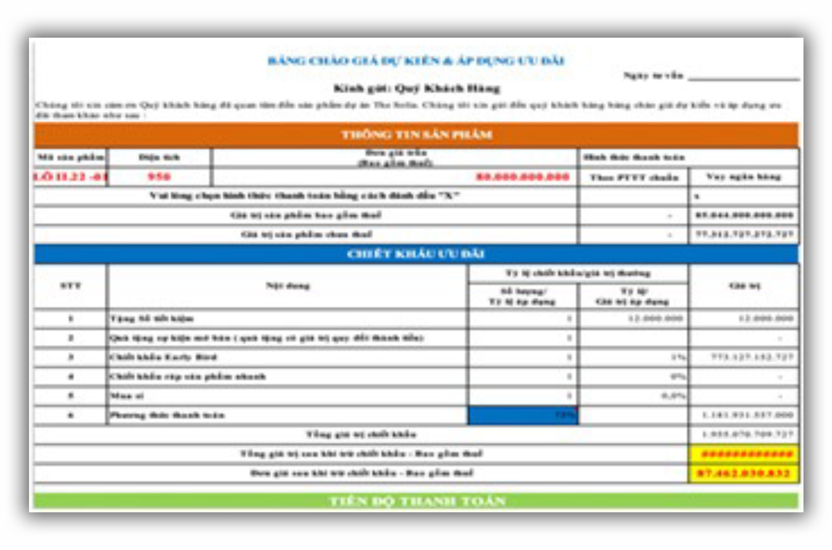 Tổng diện tích sàn sử dụng đạt : 900 – 1100m² - Hình thức mua bán : Hợp đồng mua bán nhà hình thành trong tương lai